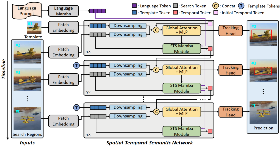 利用Mamba的选择性扫描机制,将历史帧中目标的轨迹演变和外观变化压缩进这个Token中。这仿佛让模型拥有了“视频记忆”,即便目标被遮挡或模糊,也能基于记忆快速找回。