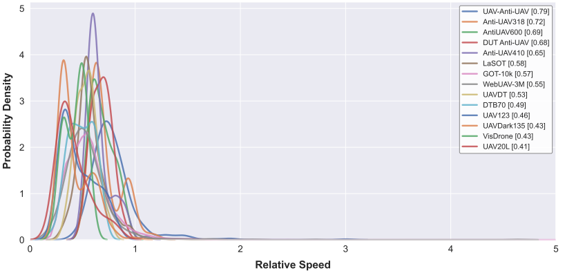l 相对速度:该数据集的平均相对速度高达0.79,远超现有的UAV123(0.46)和Anti-UAV(0.72)等数据集。