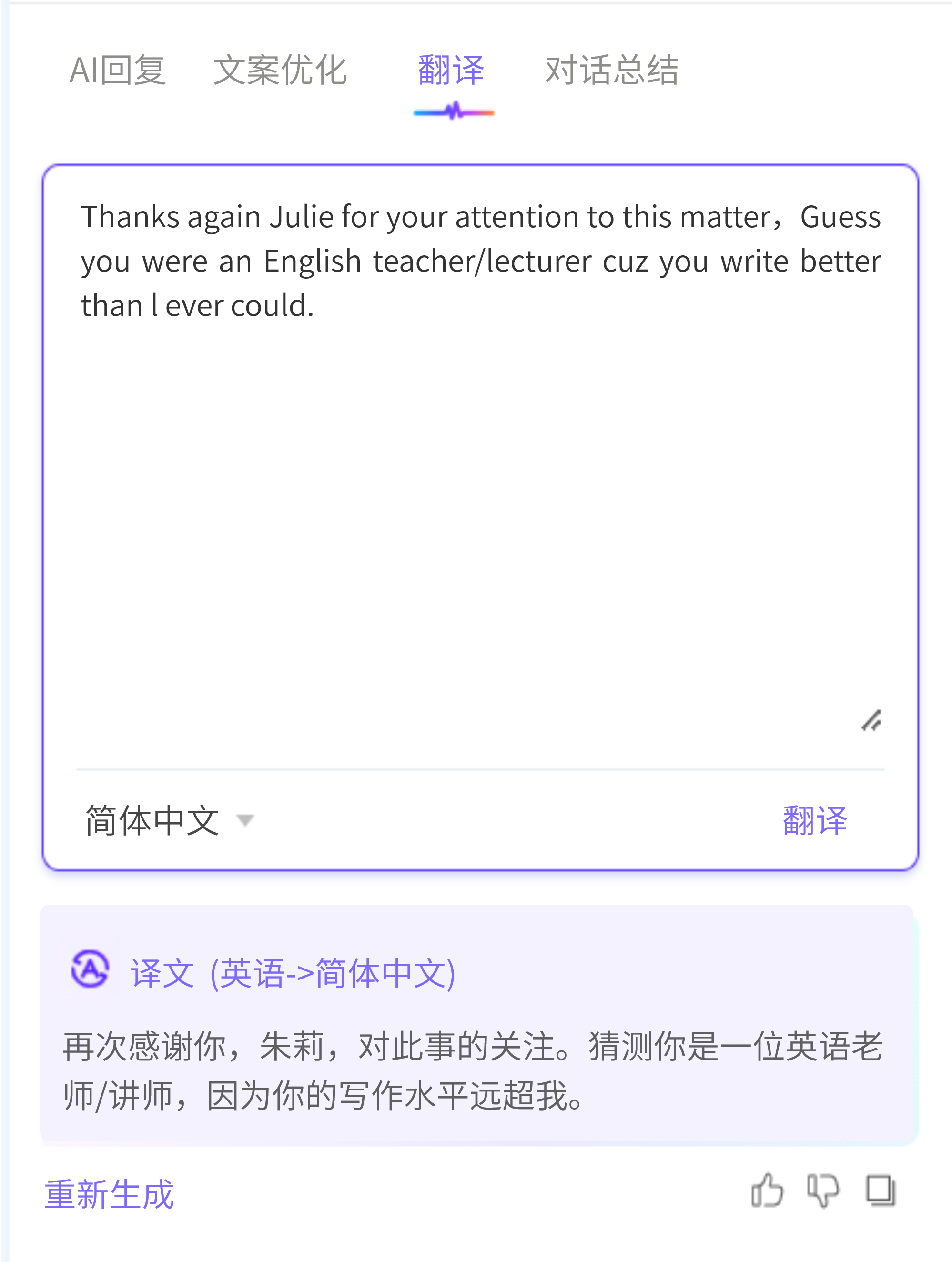 通过统一的平台和插件式部署两种方案,打通CRM系统,为客服提供辅助接待,实现邮件和对话的内容总结、智能翻译、情绪